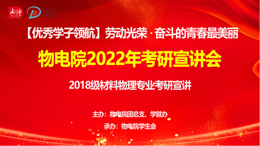 面对当今社会的激烈竞争和与日俱增的就业压力,考研成为越来越多大学生的选择,许多正在备考的同学希望能与刚从考研中胜利归来的学长、学姐们有一次交流的机会,以便更多的了解考研。为此,我院于6月2日上午举办了劳动光荣·奋斗的青春最美丽——18级材料物理班考研宣讲会。