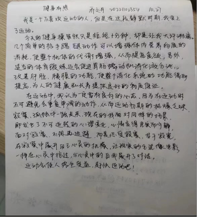 为了提高同学们身体素质,保持健康的生活方式,通过运动来减轻压力,缓解日常生活中的烦躁与苦闷,愉悦身心,确保静默期间过得充实、有意义,物理与电子信息学院团总支特开展“强身健体,从我做起”活动。