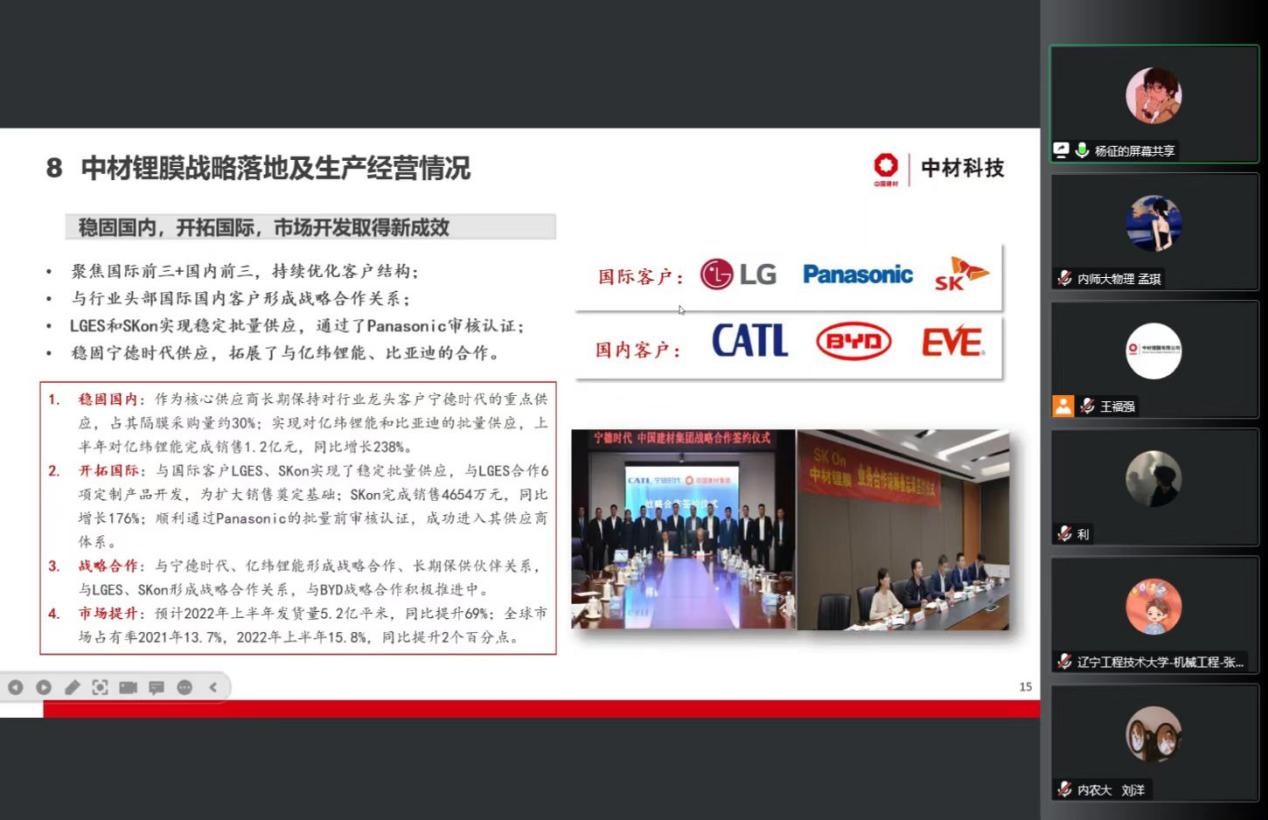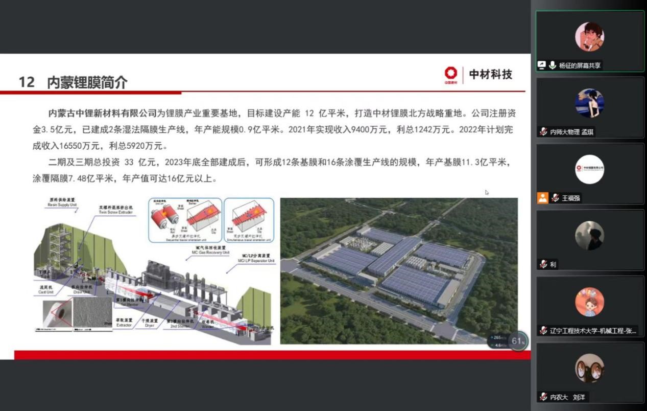 会议开始,内蒙古中锂新材料有限公司负责人杨征女士首先介绍了公司的企业文化,生产及经营情况,产品研发能力以及人才培养等方面的情况。随后介绍了公司2023年招聘的岗位和计划。互动环节上,杨征女士耐心的回答了学生们提出的问题,并针对招聘计划、薪资待遇,未来提升空间等为学生们做了详细的解读。