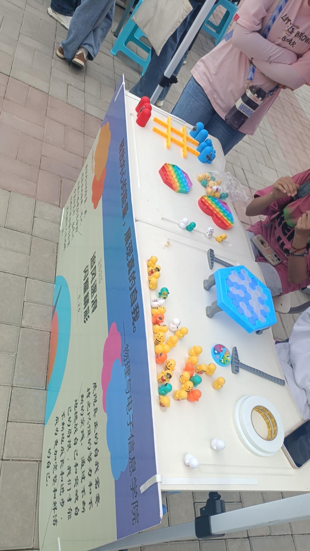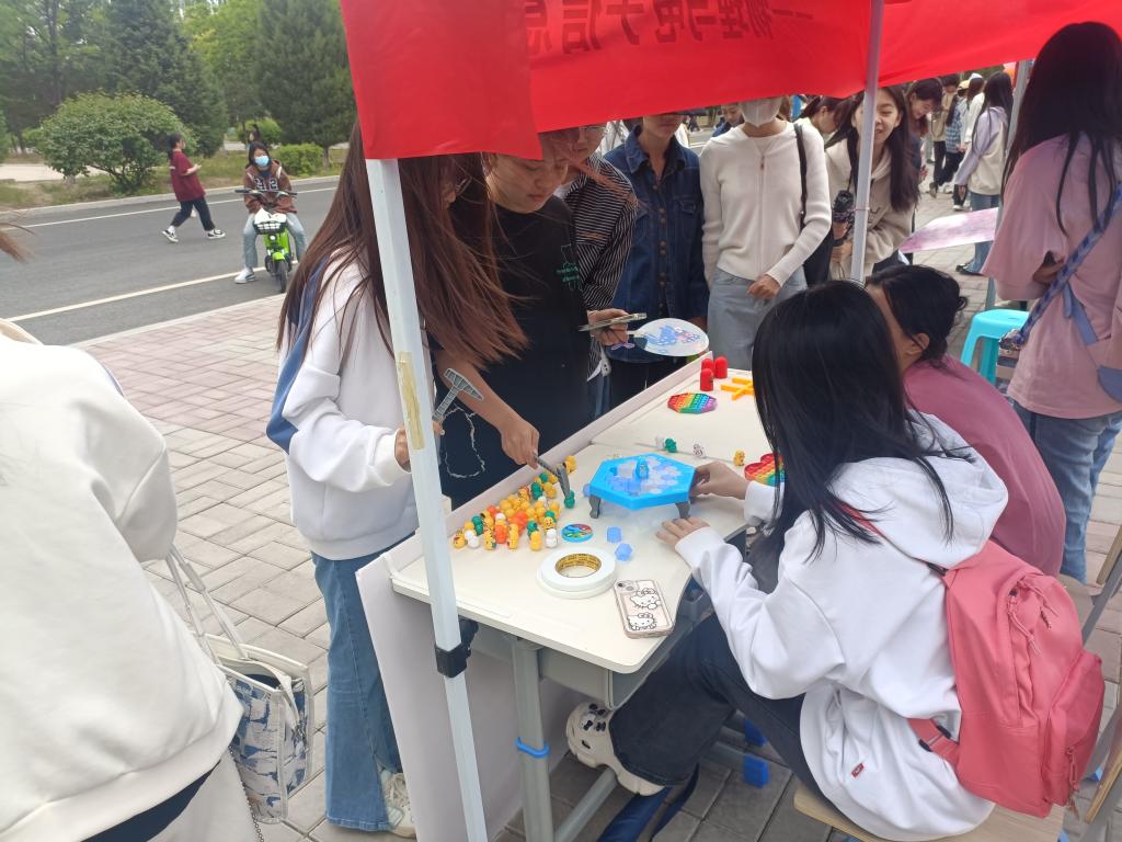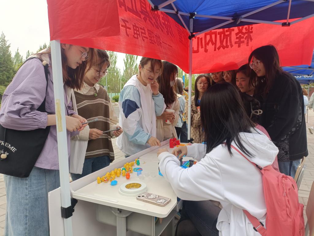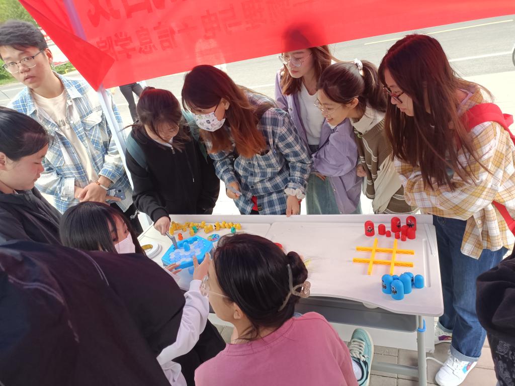 现场的工作人员负责讲解游戏玩法并宣传“5.25”大学生心理健康日。