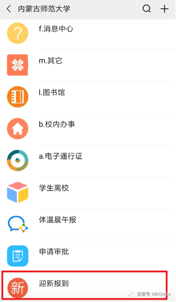 学生绑定内蒙古师范大学企业微信之后,访问迎新报到应用。
