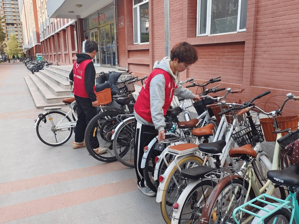 天气微凉,但是志愿者们的热情丝毫不减,在各小组组长带领下,对理工楼A座、西区7号楼和西区8号楼之间、东区2号楼、东区5号楼、西区10号楼以及西区11号楼之间的自行车进行了统一规范摆放。