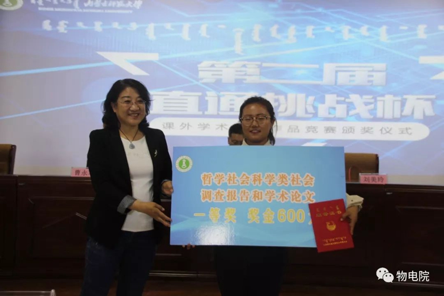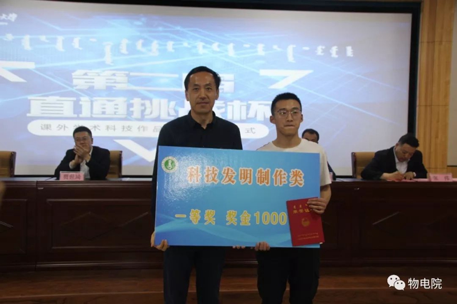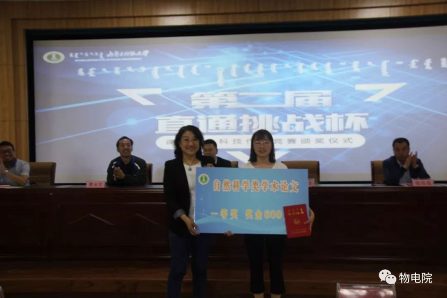 5月30日下午6时,内蒙古师范大学第二届“直通挑战杯”课外学术科技作品竞赛颁奖仪式在学生事务中心一楼报告厅举行。团委书记贾世琦,物理与电子信息学院党总支书记刘美玲,校团委副书记包双成,研究生院党总支副书记兼副院长满达,研究生院副院长陆有富,学报编辑部副主任于国伟,计算机科学技术学院副院长王海龙,物理与电子信息学院副院长曹永军、那日苏以及各评委参加颁奖仪式。颁奖仪式由物理与电子信息学院党总支副书记兼副院长张伟主持。 经过激烈的竞争与精彩的作品展示后,数学与科学学院秦燕飞的数学与科学学院秦燕飞的《不确定变时滞线性切换系统的记忆输出反馈控制》、物理与电子信息学院报送的《基于外骨骼的仿生机器手控制系统》、文学院和法政学院报送的《巴彦淖尔市磴口县阴山岩画考察》分别获得自然科学类论文、哲学社会科学类社会调查报告和学术论文以及科技发明制作类作品的一等奖;《浅析新媒体在博物馆发展中的应用》等2件自然科学类论文作品、《内蒙古荒漠草原三种植物根系分泌物对土壤微生物的影响》等2件哲学社会科学类社会调查报告和学术论文作品、《基于VCO设计的无人机干扰器》等3件科技发明制作类作品获得二等奖;《内蒙古乌兰察布市三点方言调查研究》等3件自然科学类论文作品、《I-fuzzy拓扑线性空间中的凸性》等3件哲学社会科学类社会调查报告和学术论文作品、《基于SDR与HackRF的无人机劫获系统》等4件科技发明制作类作品获得三等奖;生命科学学院报送的《豆苗工坊》等十五件作品获得优秀奖;计算机科学技术学院报送的《基于物联网技术的智慧机房管理系统》获得科技发明制作类最佳创新奖。计算机科学技术学院、法政学院、数学科学学院、文学院获得“优胜杯”,物理与电子信息学院获得“挑战杯”。 张伟书记在致辞中对获奖同学表示衷心的祝贺。他说,本次比赛从开始筹备到最终决赛,同学们敢于迎接挑战的决心、善于应对挑战的信心、主动寻求挑战的耐心,希望大家能继续保持对科技创新的热忱,吸取教训、戒骄戒躁,在科技创新的道路上成就精彩、创造辉煌。至此,内蒙古师范大学第二届“直通挑战杯”课外学术科技作品竞赛圆满结束。物理与电子信息学院将为推动创新发展理念在师大学生中形成和传播而不懈努力努力,继续将此项比赛做大、做精、做强,使之成为师大学生课外学术科技交流的舞台,营造师大学子积极进取、创新钻研的良好学术氛围。