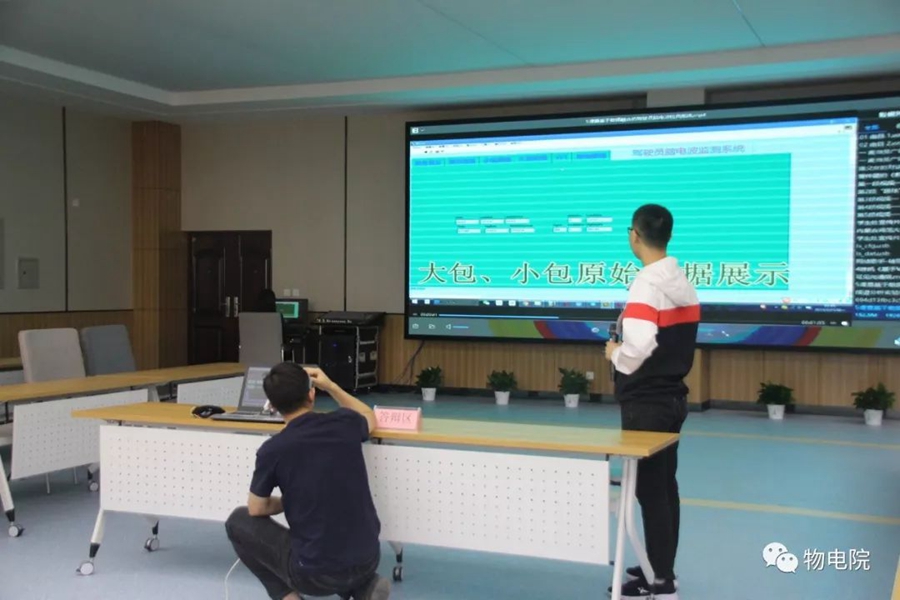 镜头转到科技发明制作类的比赛现场,这里的科技发明作品形形色色,令人大开眼界。计算机科学技术学院的同学们带来了火车票订票机器人、酒精发电机、VR自行车、牧场小型机器人饲喂设计开发等益于日常生活的发明制作;物理与电子信息学院带来了基于VCO设计的无人机干扰器、驾驶员脑电波监测系统、频谱分析实验箱、可见光通信系统、基于PVDF压电薄膜传感器智能穿戴设备等益于教学科研的“高科技”作品......一件件新奇的科技作品,配上选手们详细的的介绍,引来一阵阵喝彩和掌声。评委老师们也对一些作品进行了试用,对同学们广阔的思维与智慧表示赞扬与肯定。