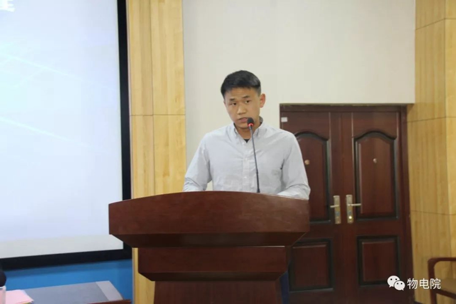 随后,科学技术史研究院副教授董杰作为评委代表发表讲话。他代表大赛评委郑重承诺,将秉承公平公正的评审理念,把最优秀的作品、最有潜力的青年发掘出来,以最负责任的态度为大赛组委会选出真正优秀的作品,为我校能够在全区、全国挑战杯决赛中取得好成绩奠定坚实基础。同时,希望同学们能珍惜“挑战杯”竞赛给予的宝贵的精神力量,充分利用良好的科技创新氛围和各种有利条件,提高自己的综合能力。物理与电子信息学院大四学生蒋奎作为参赛代表发言。他说,大学生将来我国发展科学技术的新兴力量,因此,我们应该具有创新精神,向自己的学习和工作中注入创新元素,提升自己的创新和实践能力。并代表全体参赛选手承诺,将认真对待此次比赛,严格遵守比赛规则,认真听取各位评委建议,保证大赛顺利进行;将认真对待比赛结果,对比赛过程中出现的缺陷,在赛后谦虚求教,认真查漏补缺,将所学知识完善。各位代表讲话结束后,由工作人员介绍了赛制规则与比赛流程,随后,决赛正式开始。