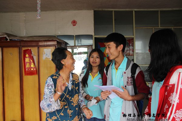本网讯 2016年7月21日上午,我院学生“三下乡”服务队组织进行回访活动,对村里我们进行过电器维修的用户再一次走访慰问。同时我们还为乡亲们带去了小礼物。礼轻情义重,乡亲们接过小礼物的时候,他们憨憨的笑着,眼中却早已饱含深情泪花。看到乡亲们用着我们修好的电饭煲做饭,用着我们修好的电视机看着电视剧,用着我们修好的收音听新闻,一种自豪感不禁地在我们内心涌动。“大学生就是大学生;娃娃的学没白上;感谢感谢;为内师大物电院点赞……”,这些从乡亲们口中说出来必须仔细听才能听懂的当地话,让我们觉得没有白来,我们用热情和知识为乡亲们带来了实打实的帮助。我们要为自己在“三下乡”这个第二课堂中的表现打满分。