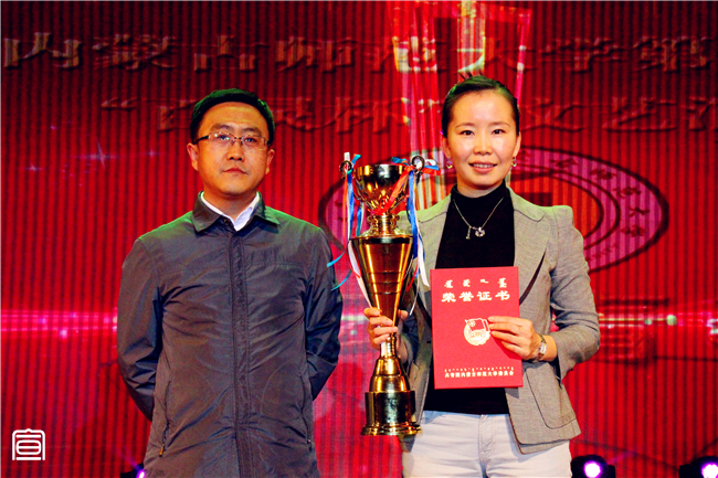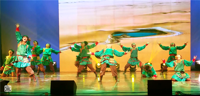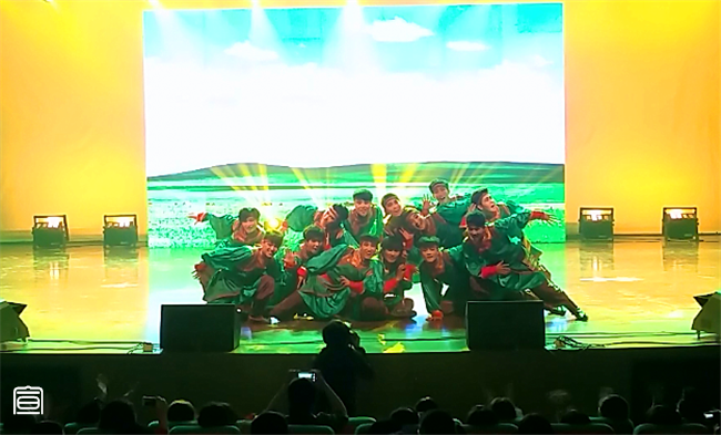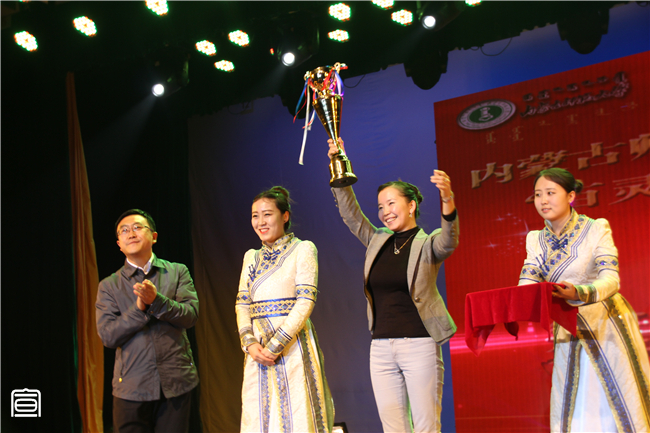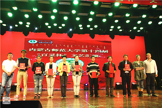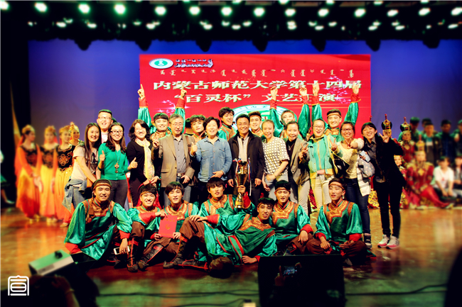 伴随着所有节目的全部结束,主持人宣布获奖单位和个人,我院团总支书记萨其尔老师作为我院代表上台接过沉甸甸的“百灵杯”并荣获优秀指导老师奖,现场观众发出热烈掌声。晚会结束后,我院党总支书记阿梅老师、院长特古斯教授、副书记何小龙老师、副院长刘美玲老师一同上台与舞蹈演员们和工作人员们亲切握手并合影留念表示祝贺。至此,第十四届“百灵杯”文艺汇演已全部结束,成绩已镌刻在物电院史册,但为此涌现出的巨大文化创造力和集体凝聚力必将为新时期下“大物电”精神的培育与践行注入更强有力的活力!