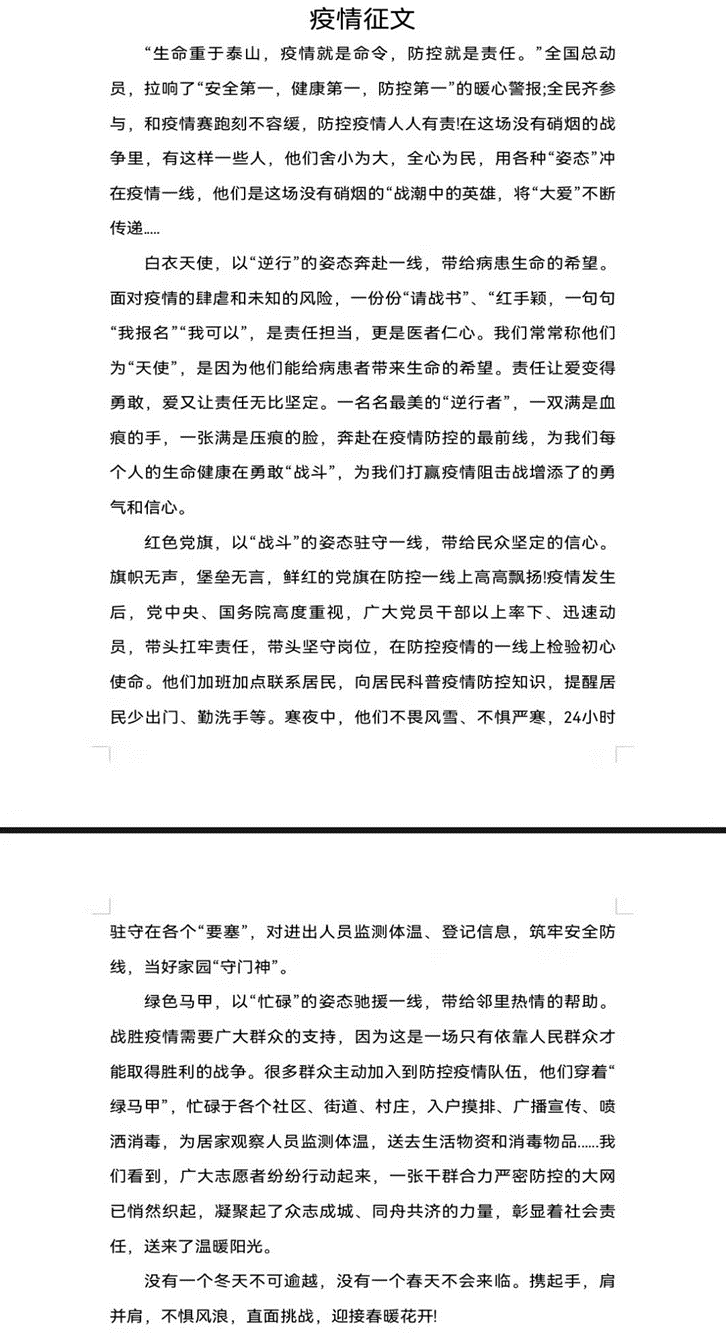 通过此次“疫情防控”绘画征文创意征集赛,提高了同学们对防疫工作的的重视程度,也更加体会到防疫工作者们的艰辛,同时坚定了共同抗疫的决心。我们坚信,没有一个冬天不会过去,没有一个春天不会到来。让我们共同期待冰雪消融之日,战胜病毒之时,让我们相约美丽的青城,一起去感受“天苍苍,野茫茫,风吹草低见牛羊”!