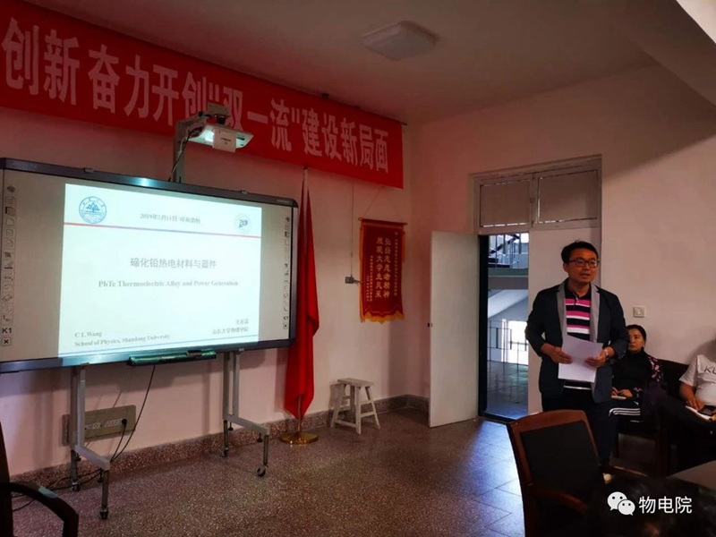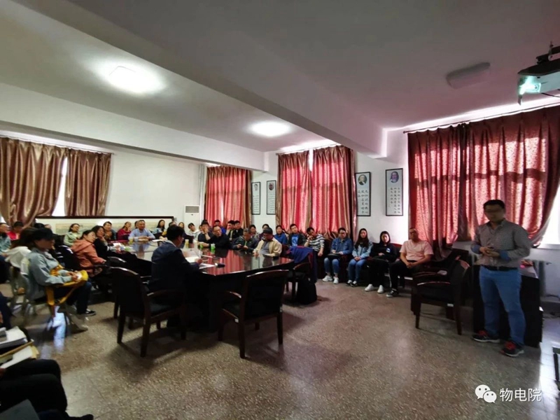 5月1日,山东大学物理学院王春雷教授受邀来到内蒙古师范大学,于物理楼会议室做“碲化铅热电材料制备与性能”学术报告。此次报告会由我院副院长那日苏主持,部分任课老师以及研究生本科生参加会议。