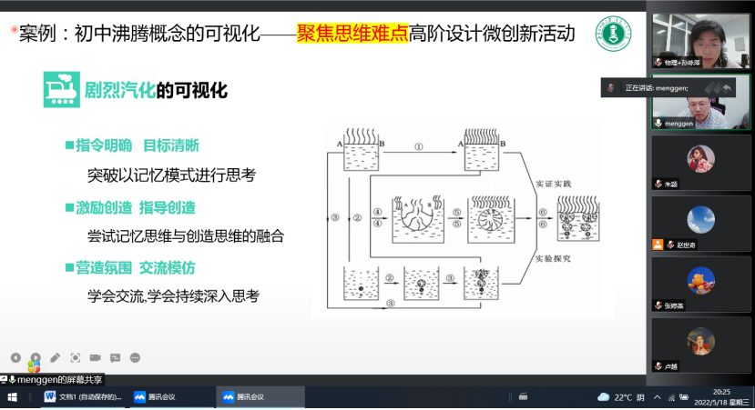 孟老师以让大家微笑15秒开始这趟思维的旅行,从课堂教学能否训练创造性思维,如何实现思维的跨越式发展,以及建构高阶性,创造性课堂教学问题的原因为我们展开讲授。在讲授过程中,孟老师从日积月累的修身、知识储备、专业技能等角度诠释了记忆思维和创造性思维的深度融合可使得理性思维得到发展。我们可以通过布置微创新的可视化学习任务,以指令明确目标清晰、激励创造指导创造、营造氛围交流模仿三个步骤干预学生认知思维的进阶,让学生的学习过程充满创造性,学习成果富有艺术性,在潜移默化中增加学生创造思维,创新能力和核心素养。孟老师说作为教师不应该把课程讲成一个神学,学生成为一个神徒,我们要设计目标,学生参与过程和教学评价,让学生建构自己理解,学会深度学习,从而突出以“学”为中心的转变。