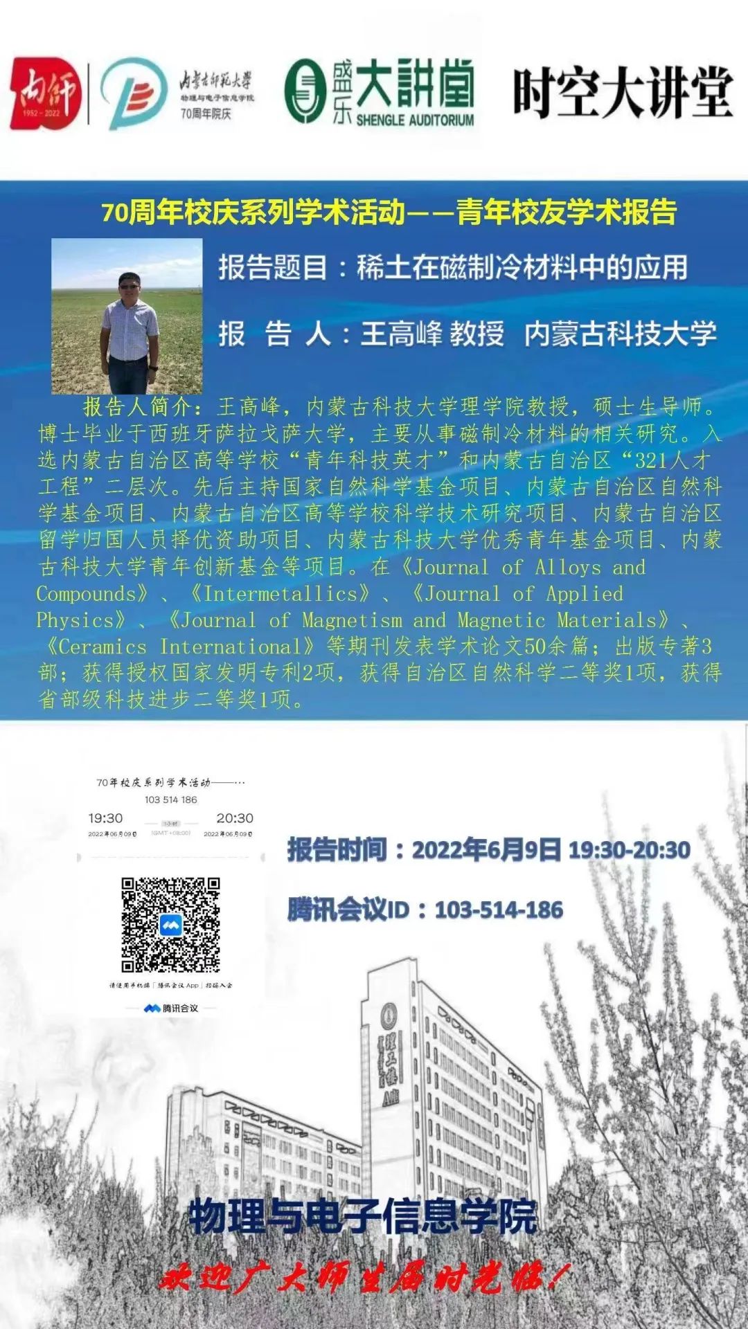 【预告|时空大讲堂】物电院70院庆系列学术报告(一)王高峰:稀土在磁制冷材料中的应用