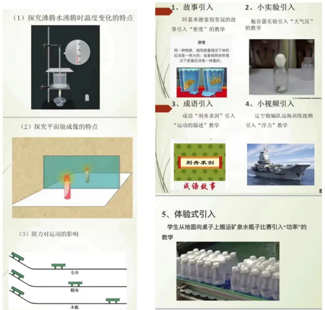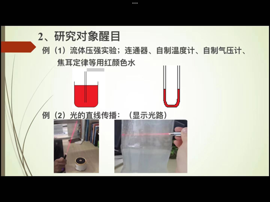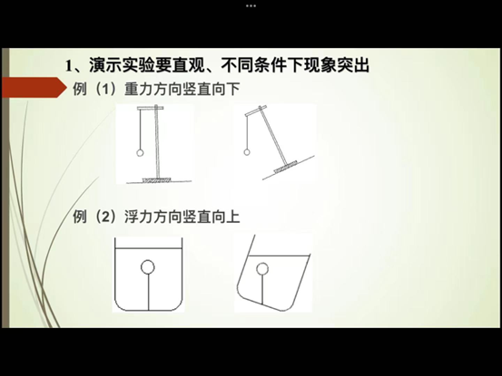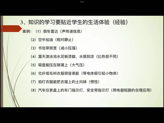郭老师强调,对于刚接触物理的初中学生我们要遵循由浅入深,循序渐进的教学原则。在实验教学中,要注重直观性,醒目性,所学习的知识要贴近学生的实际生活,使物理学习生活化,引发学生的好奇心和求知欲。在实验操作中,要注重实验的过程性,不仅是记忆性学习,而且要理解性学习,让学生对知识的认识能力,理解能力,分析综合能力等方面得到锻炼和提高。