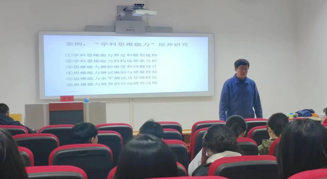李群老师围绕“学科教育硕士的职业特征是什么、学科教育硕士的基本素养有哪些、优秀学科教育硕士的实践能力如何”三方面展详细阐释了作为一名现代教育硕士需要发展的标准和方向。
