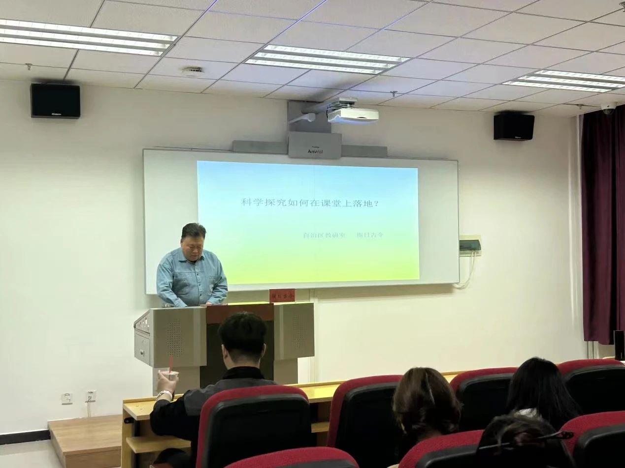 4月18日,我院教育硕士学位点荣幸邀请到了内蒙古自治区教研室资深物理教研员、特级教师斯日古令为我们带来了一场主题为“科学探究如何在课堂上落地”的精彩讲座。学院教师教育团队导师及本硕师范生等众多师生积极参与,共同聆听斯老师的分享。