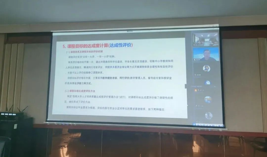 会上,华南师范大学物理与电信工程学院党委书记唐志列教授在线指导,主要围绕师范专业认证理念认识、认证标准、迎评准备工作三个方面进行实际指导。唐志列教授结合实际案例,对实际撰写中容易出现的问题和值得借鉴的经验进行了详细的说明。他结合专业认证标准,用简洁明了、通俗易懂的语言给参会人员带来了一场高质量培训。