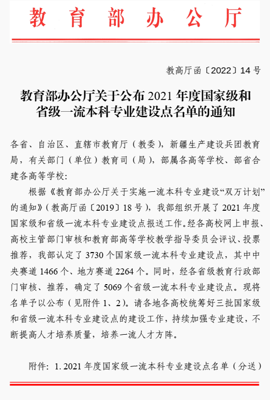 近日,教育部公布了2021年度国家级一流本科专业建设点名单。我院物理学专业获批2021年度国家级一流本科专业建设点!